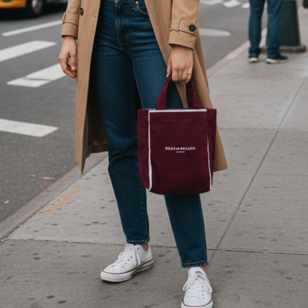 DEAN&DELUCA CORDUROY RED TOTE BAG XS กระเป๋าลูกฟูกสีแดง
