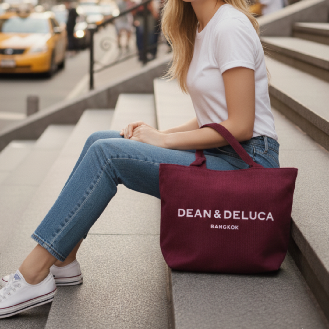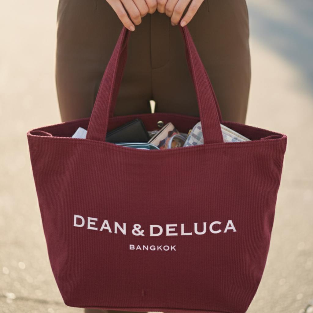DEAN&DELUCA CORDUROY RED TOTE BAG XLกระเป๋าลูกฟูกสีแดง