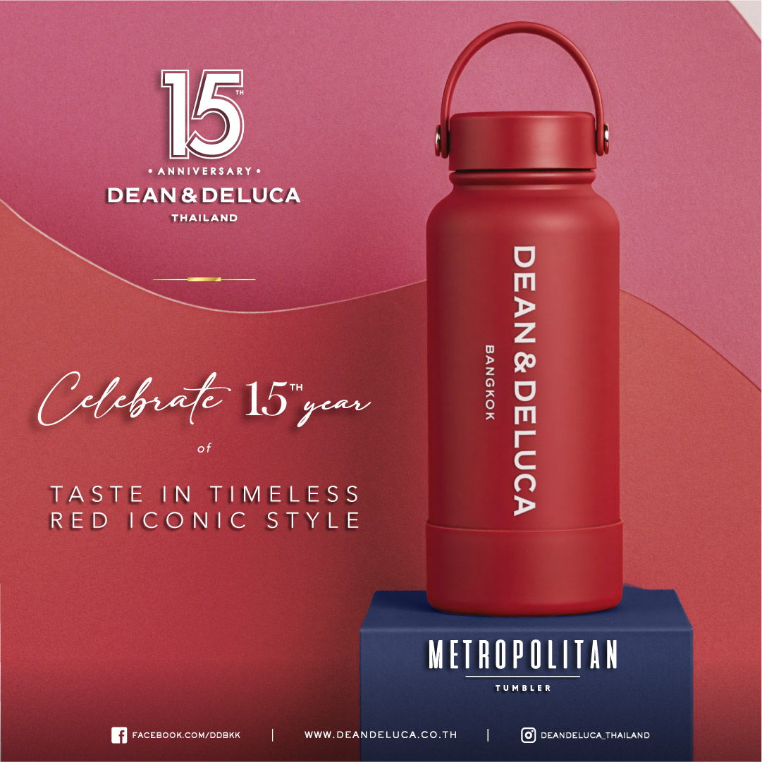 แก้วที่สามารถเก็บความเย็นและร้อน: แก้วสีแดงจากแบรนด์ Dean&Deluca ออกแบบมาสำหรับการเดินทางในกรุงเทพฯ รุ่น METROPOLITAN ให้คุณเก็บเครื่องดื่มได้อย่างมีประสิทธิภาพ ทั้งในสภาพแวดล้อมที่ร้อนและเย็น.