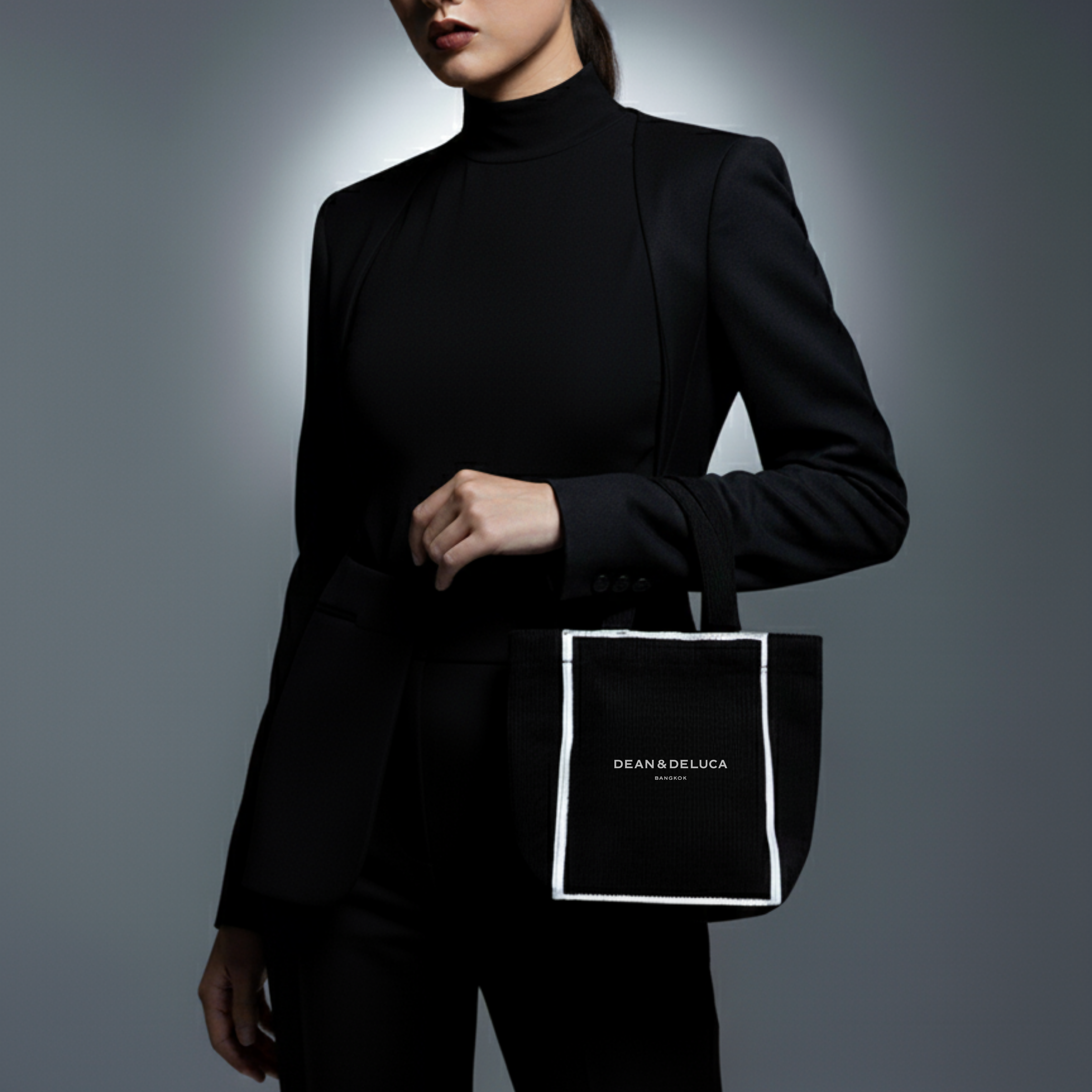 มี หูหิ้วคู่ และมีโลโก้ DEAN & DELUCA เป็นเอกลักษณ์อยู่ด้านหน้า